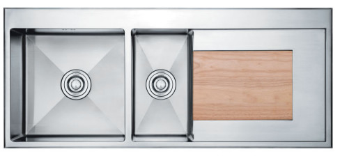 Компактные одноразовые раковиныПоскольку переполнение интегрировано в сторону, оно скрыто от поля зрения.Вариант с дренажной доскойОсобенно подходит, если вы время от времени моете руки или хотите использовать поверхность для приготовления пищи.многозадачностьПолюбитдвойные раковины: в то время как вы моете овощи в маленьком бассейне (ширина 180 мм), вы также заполняете предназначенную кастрюлю в большом бассейне (ширина 450 мм).Если вам постоянно приходится обращаться с большими емкостями или посудой для выпечки, вариант с двумя большими бассейнами (ширина каждого 430 мм) был бы идеальным выбором.